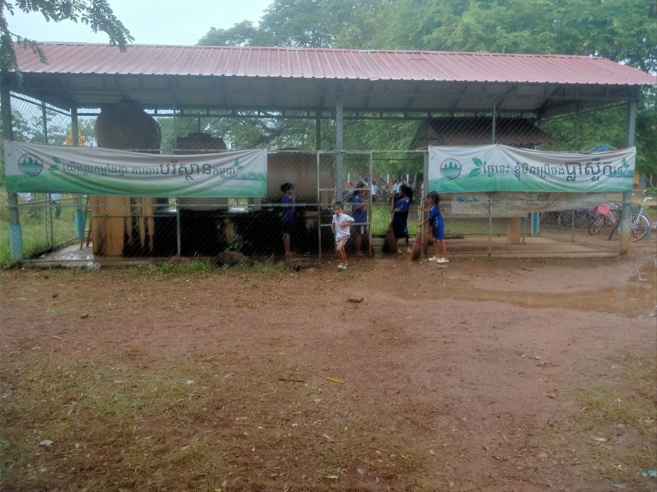 校庭にはフィルターを備えた給水所、手洗い場があります。
