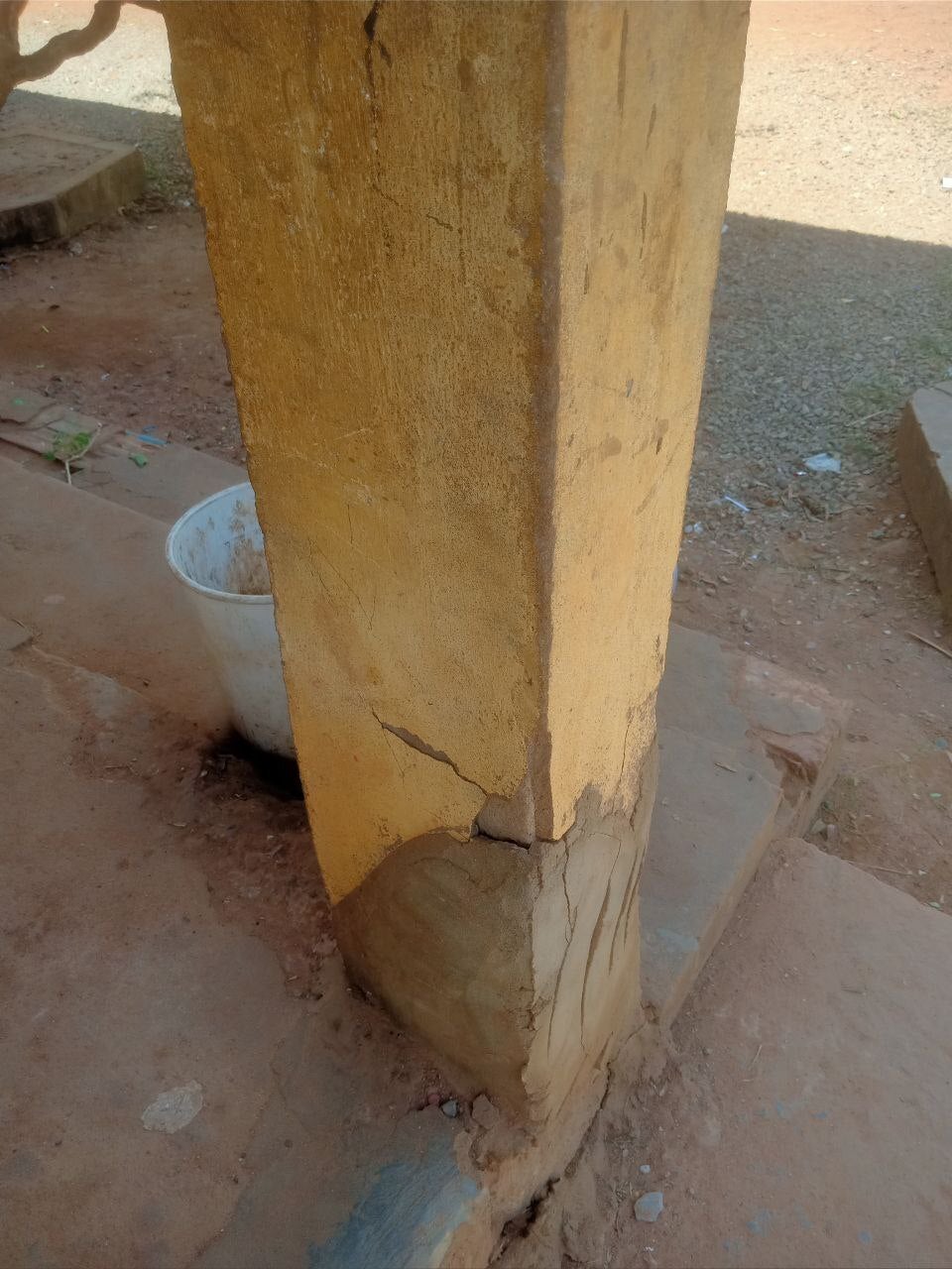 近隣にあるセメント工場を運営する企業からセメントの寄附を頂けたとのこと。早速破損の激しい柱を直しましたと写真が送られてきました(ちょっと雑な感じなのはカンボジアなので…)。