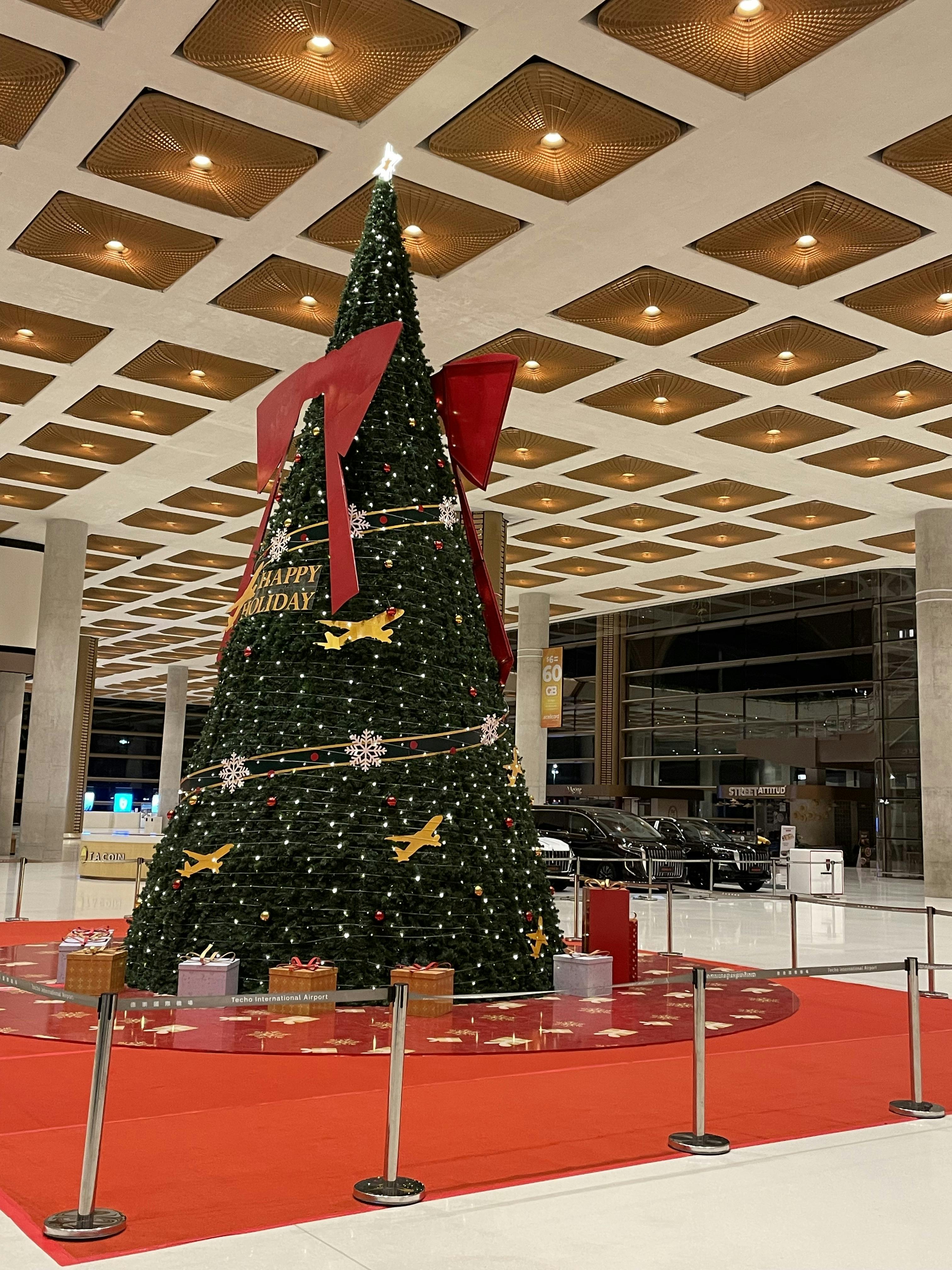 写真は新しくなったプノンペン国際空港の中のツリーです。到着出口付近にこんな大きなツリーが!