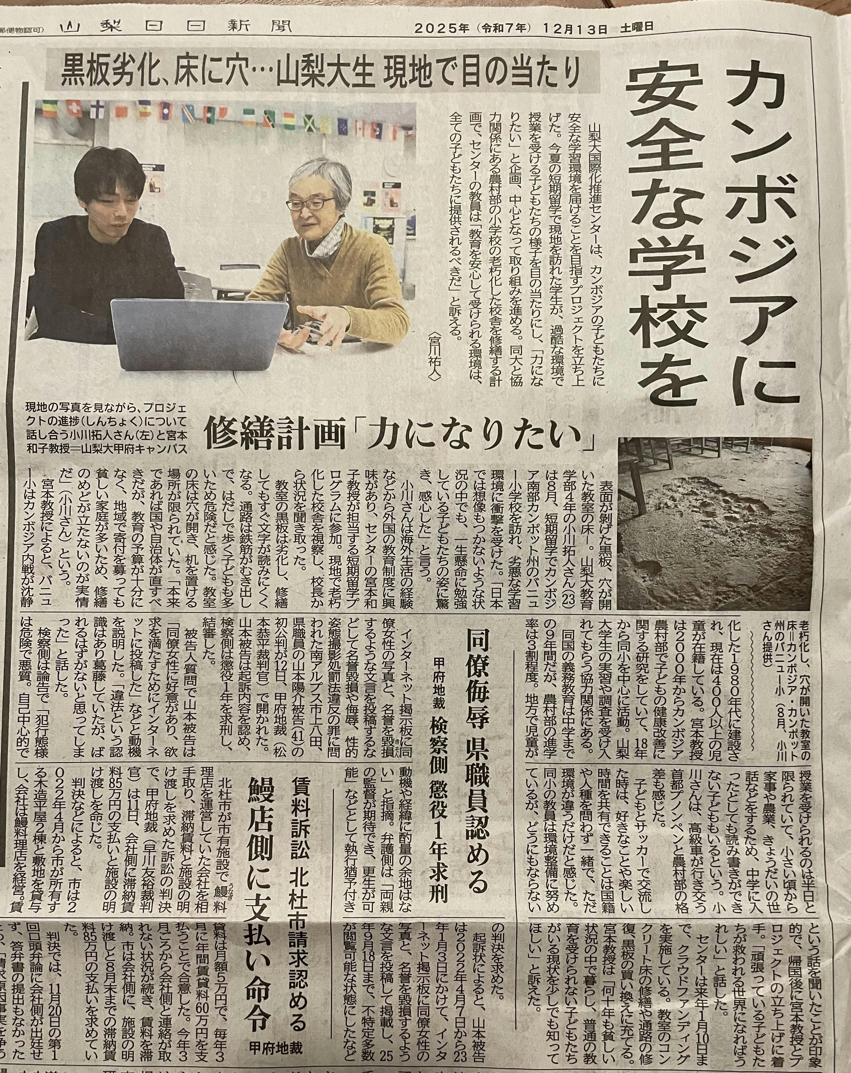 本日、山梨日日新聞に取り上げていただきました。皆様のご協力、どうぞよろしくお願いいたします。