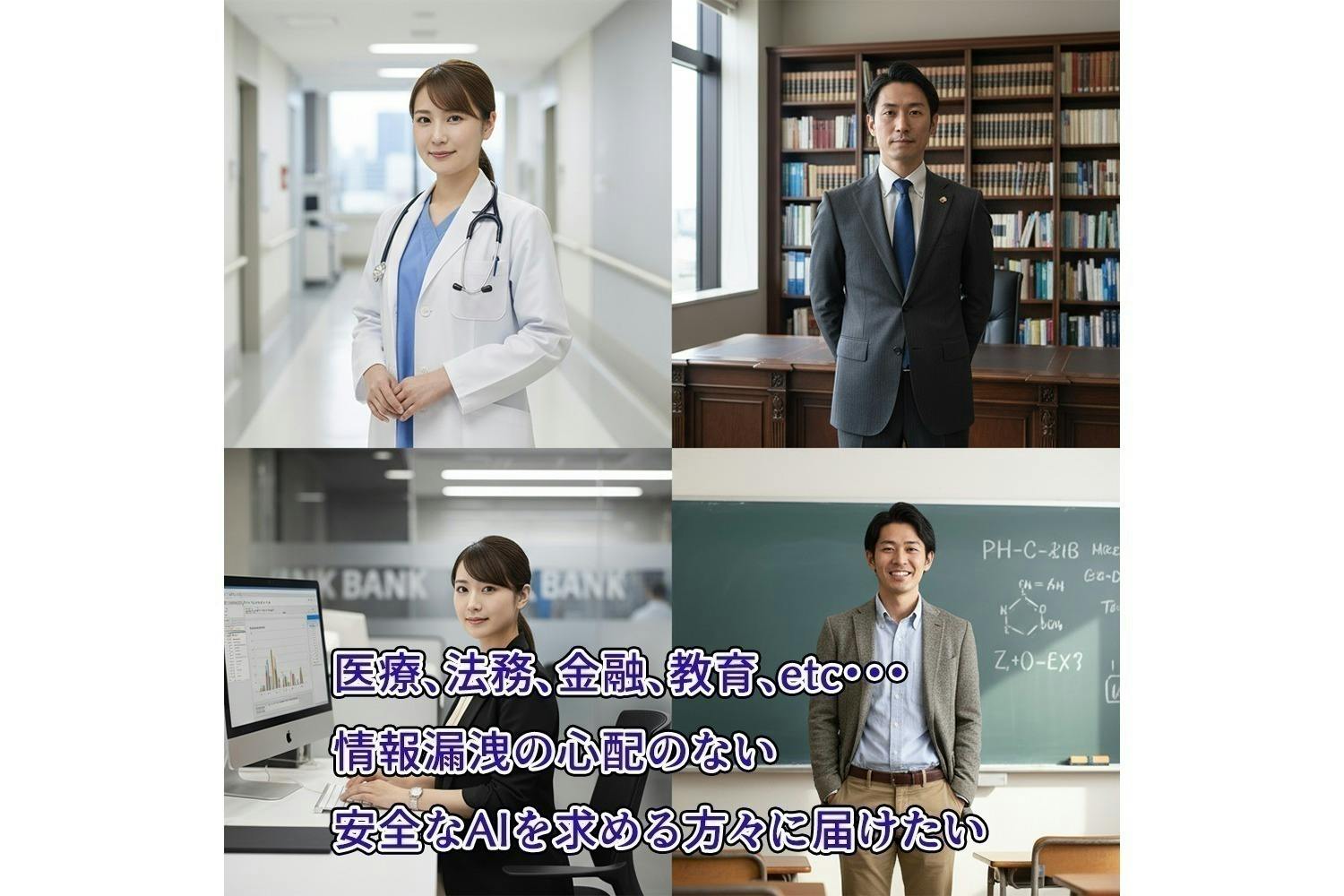 医療・教育・法務・金融──社会の基盤を支える人たちが、安心してAIの力を使えるようにする。それがこのプロジェクトの使命です。