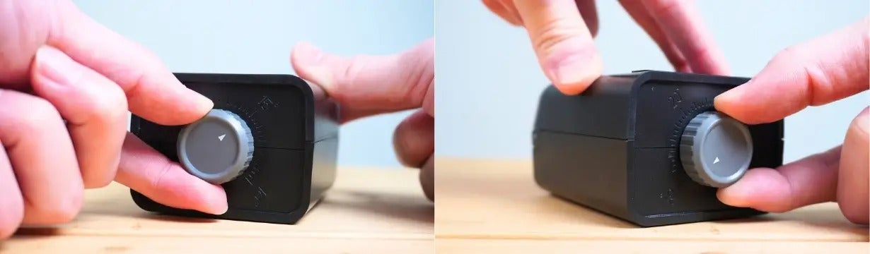 そんなお悩みを解決するオススメポイントがあります!「EDGBLACK Electric Knife Sharpener」ではダイヤルを回し、10°~25°まで設定でき、目的別に使用が出来ます。
