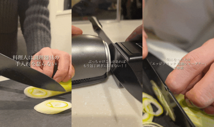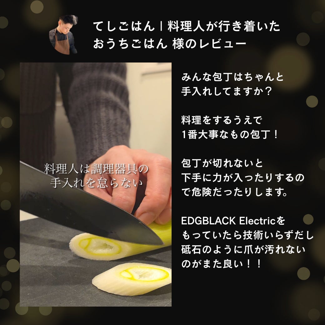 普段使っている板上の砥石だと爪が汚くなりますが、EDGBLACK Electircだと爪が汚くならないから良い!と、また違った角度から的確な評価をいただきました!