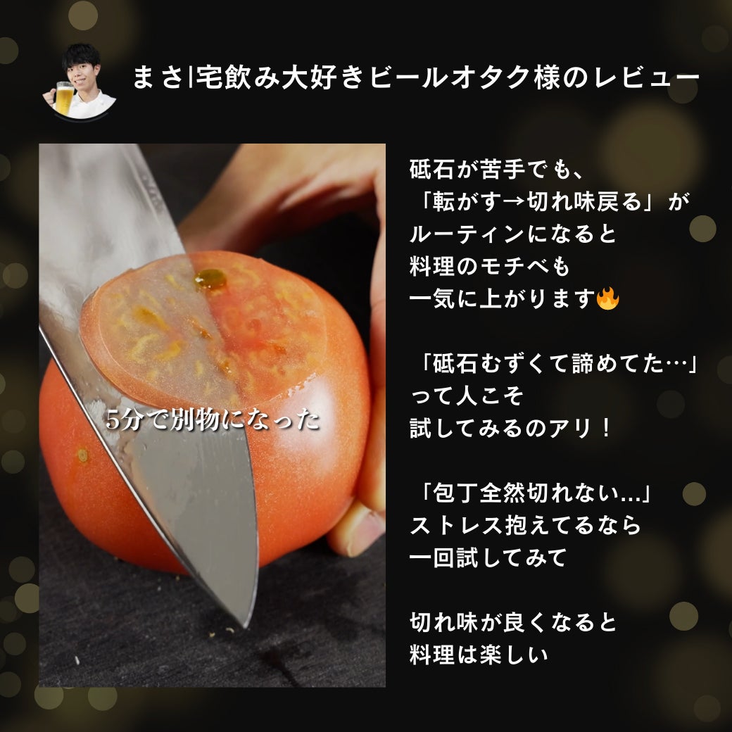 【応援購入いただきましたサポーターの皆様ならびにご関心いただきました皆様へ】お世話になっております。EDGBLACKプロジェクト担当です^^本プロジェクトへのご支援・ご応援、誠にありがとうございます!「EDGBLACK Electric Knife Sharpener」プロジェクトはネクストゴールの800万円に向けて挑戦を続けております!ここまでの大きなご反響、温かいご支援・ご応援をいただきまして、誠にありがとうございます!本日は本商品の「こだわりポイント②」をご紹介いたします。それはプロジェクトページからもお分かりいただける通り『角度が固定でき、砥石の難しさを徹底排除』です!包丁を砥ぐ際、どの角度で砥いだらよいのか頭を悩ませますよね…合っているのか自信が持てずその点が効果が期待できる砥石を回避して、より手軽なシャープナーを選ぶ方も多いと思います。そんなお悩みを解決するオススメポイントがあります!「EDGBLACK Electric Knife Sharpener」ではダイヤルを回し、10°~25°まで設定でき、目的別に使用が出来ます。・切れ味が気になる際は10°~15°の鋭角・切れ味と欠けにくさの両方が気になる際は15°~20°・刃の欠けが気になる際は20°~25°の鈍角包丁を磁石で固定するベースの内部には、強力なネオジム磁石を内蔵しており、包丁を強力に固定します。(刃幅が35mmを超える包丁は刃を下向きに固定し、刃幅が35mm未満の包丁では刃を上向きに固定をしご使用ください。)私と同じように包丁・ナイフのお手入れ悩んでいる皆様、また毎日の包丁のお手入れが欠かせないプロの料理人の皆様、刃物へのこだわりが深い皆様にも、ぜひ効果を実感いただけますと幸いです!いかがでしたでしょうか?気になった方は是非、プロジェクトページや実演YouTubeを見直してみてくださいね!今後も本商品の『こだわりポイント』を紹介していきますので、もしよろしければ引き続きご覧いただき、本商品へのご理解とご愛着を深めていただければ幸いでございます!↓「EDGBLACK Electric Knife Sharpener」実演YouTubeをこちらから!https://youtu.be/U87fHMjlTWY?si=MDcRKRr82YetqZDO