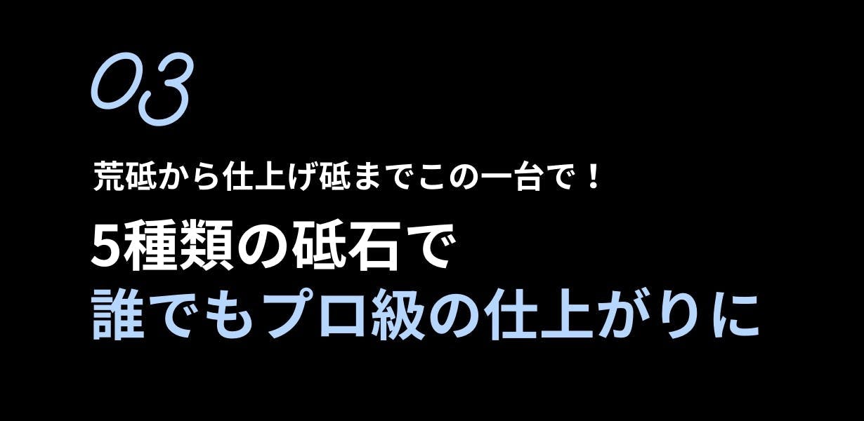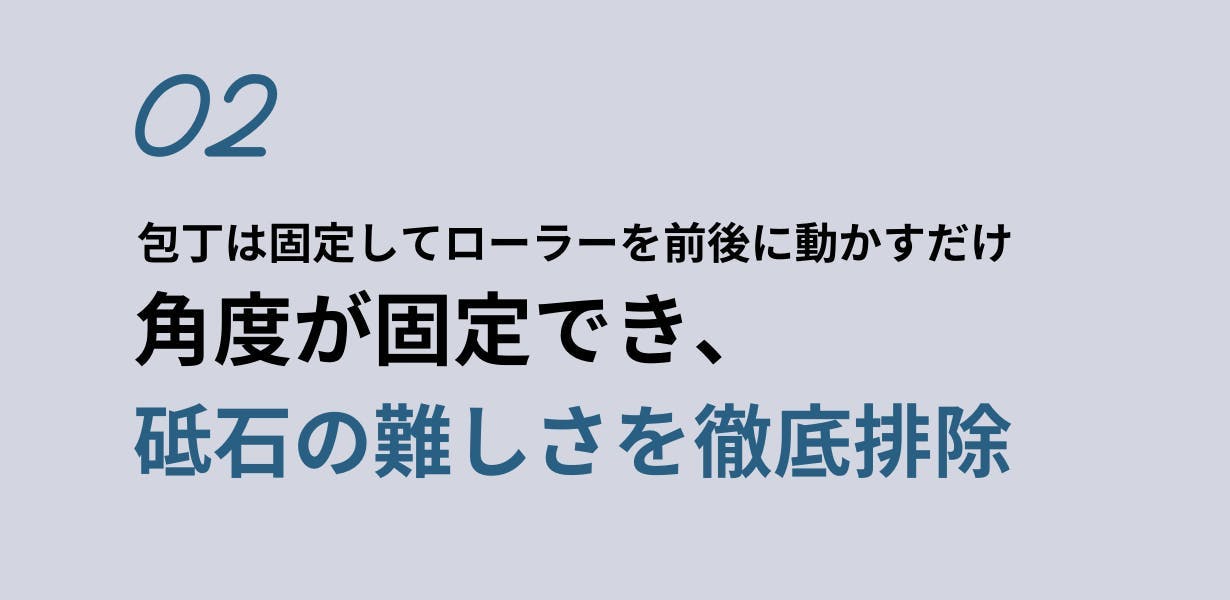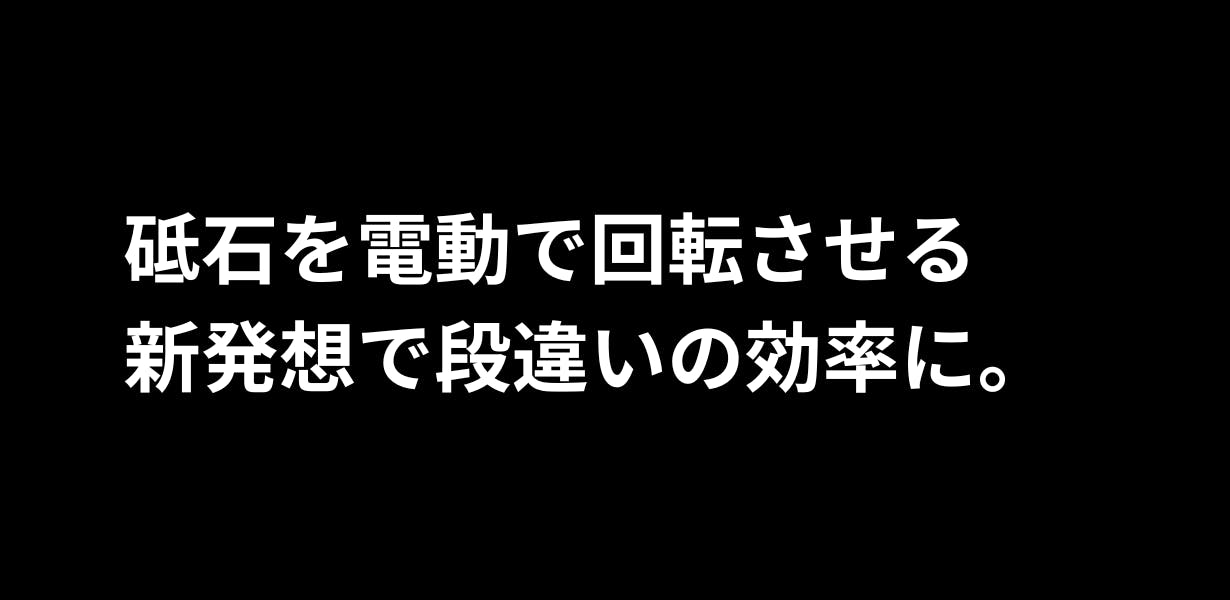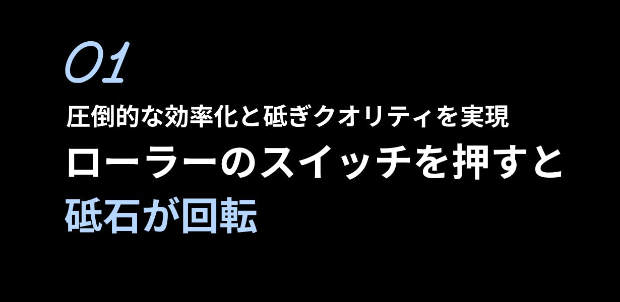 本商品は転がす砥石という従来の形を踏襲しながらもその砥石を電動で回転させる事で更なる効率化・砥ぎの質向上を実現しました。