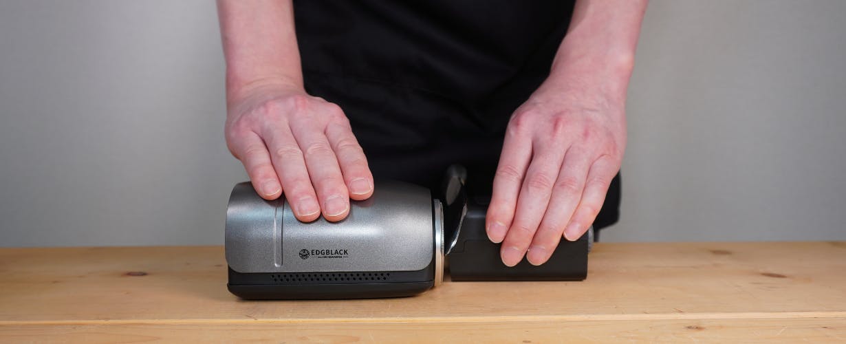 そこで頂いた貴重なご意見をメーカーへフィードバックを行い更に試行錯誤を重ねて完成したのが、砥石を電動で回転させる転がす包丁砥ぎ器「EDGBLACK Electric Knife Sharpener」です!