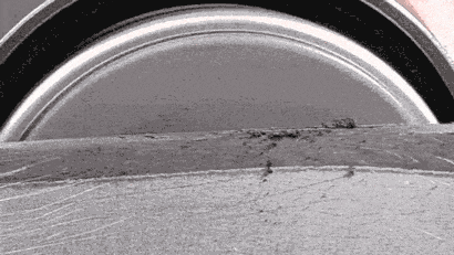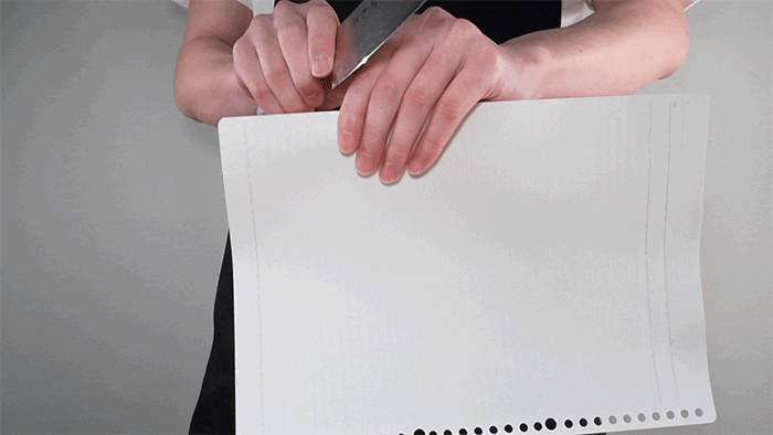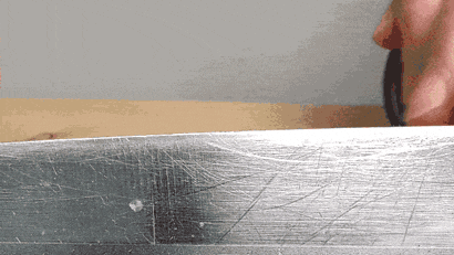 ローラーを刃に当て、ゆっくりと前後に転がす