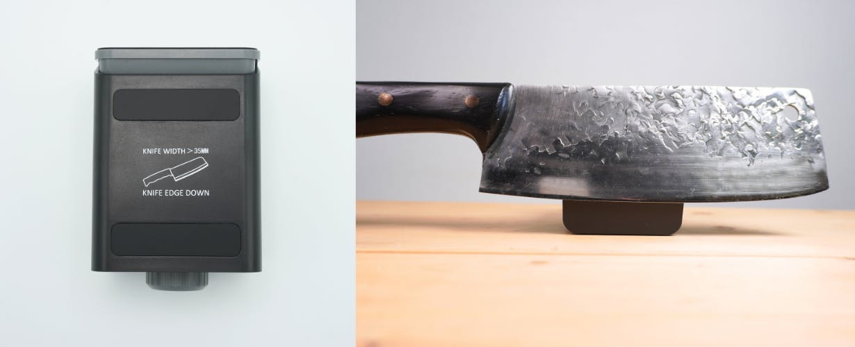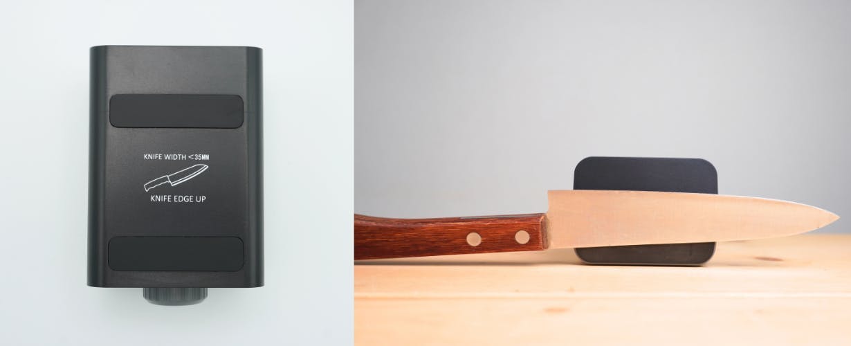 ベースの内部には強力なネオジム磁石を内蔵しており、包丁を強力に固定