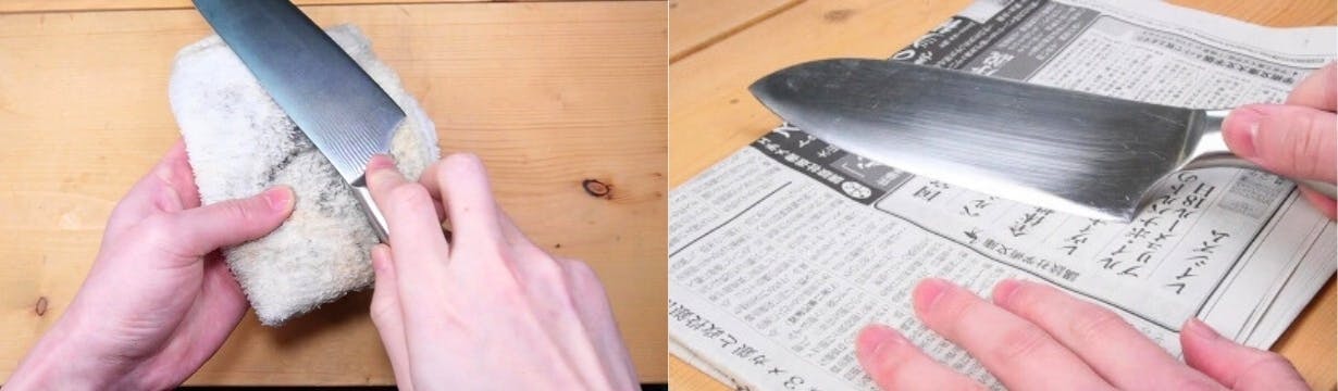 砥ぎが完了したら砥ぎカスを布で拭き取って新聞紙や革砥で刃を整える