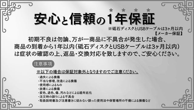 A:初期不良の場合は、新しいものに交換対応をいたします。尚、ユーザーの使用未熟による払い戻しは受けておりません。使用感等に関する返品・返金もお受けいたしかねます。商品到着時の商品パッケージの汚れ、お客様自身による商品の破損に関しましては保証対象外となりますのでご了承ください。