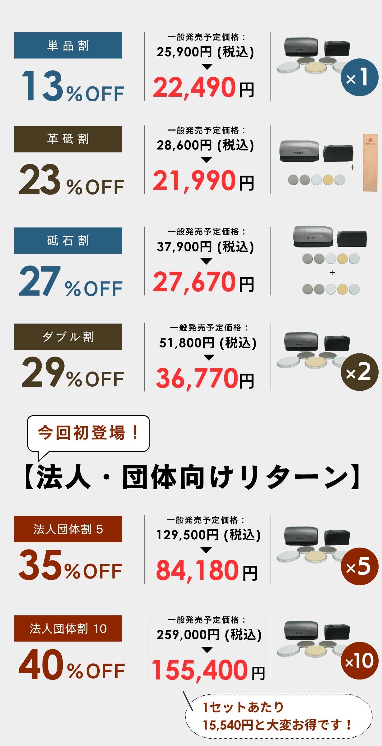 2026/02/19 15:51【EDGBLACK Electric Knife Sharpener プロジェクト支援者の皆さまへ】お世話になっております!EDGBLACK プロジェクト担当です^^ご支援いただいた皆さま、大変お待たせいたしました!本日より順次、支援者様へリターン商品を発送いたします!早い方は明日より、順次お手元に届きますので暫くお待ちいただけますと幸いです^^地域によっては届くまでにお時間がかかってしまう可能性もございますのでご了承ください。何かご不明点やお困りの点がありましたら、お気軽に弊社公式LINEまでご連絡くださいませ!上手く包丁が砥げないということなどございましたら、何でもご相談ください。■公式LINE: https://lin.ee/iO26eBc取扱説明書に関しまして、皆さまがネットから簡単にご確認いただけるようにダウンロード用の取扱説明書をご用意させていただきました!印刷してご利用いただくことも可能です!勿論、簡単ではございますが商品にも取扱説明書は同梱しておりますので、ご安心くださいませ。↓URLは以下の通りです。https://drive.google.com/file/d/1Zk27Kqc_u_Uma_wRdCHu-P4VmO1wrD1u/view?usp=sharing皆さまのお手元に「EDGBLACK Electric Knife Sharpener」が無事に届き、愛用の包丁やナイフを砥ぎあげ、鋭くなった切れ味を料理や趣味の中で体感している姿を想像すると、非常に胸が熱くなる想いでございます...!!是非、知人やSNSなどで未だ本商品を知らない方へこんなに良い包丁研ぎがあるんだということを是非お知らせいただけますと幸いです^^これからも『国内外の革新的で魅力的な商品を市場へ広め、豊かな社会の実現に貢献する』という事業理念のもと、益々尽力してまいります!今後とも温かいご支援とご愛顧を賜れますよう、心よりお願い申し上げます^^ もっと見る
