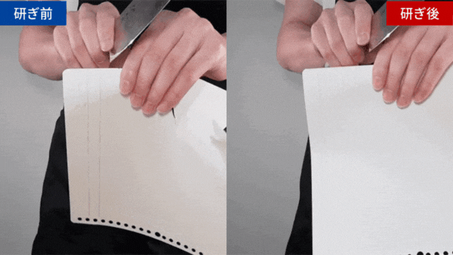 EDGBLACK Electric Knife Sharpenerで砥ぐことで、この通り気持ちよく切れるようになりました!