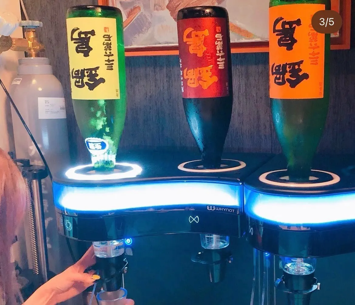 この装置を自社開発し、独自の技術によって開栓時から空になるまで酸素に触れずに提供し、