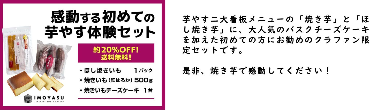今回の挑戦をきっかけに、初めて芋やすを知った方に向けたお試しセットや、すでに芋やすの商品を愛用頂いている方にも喜んでいただけるようなリターンを複数用意しました!