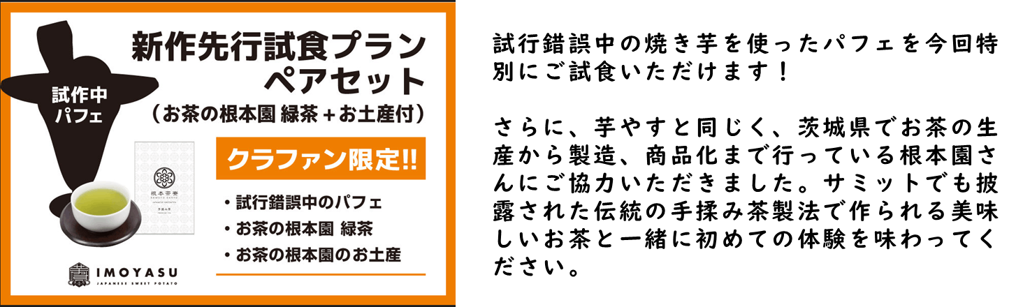 今回の挑戦をきっかけに、初めて芋やすを知った方に向けたお試しセットや、すでに芋やすの商品を愛用頂いている方にも喜んでいただけるようなリターンを複数用意しました!