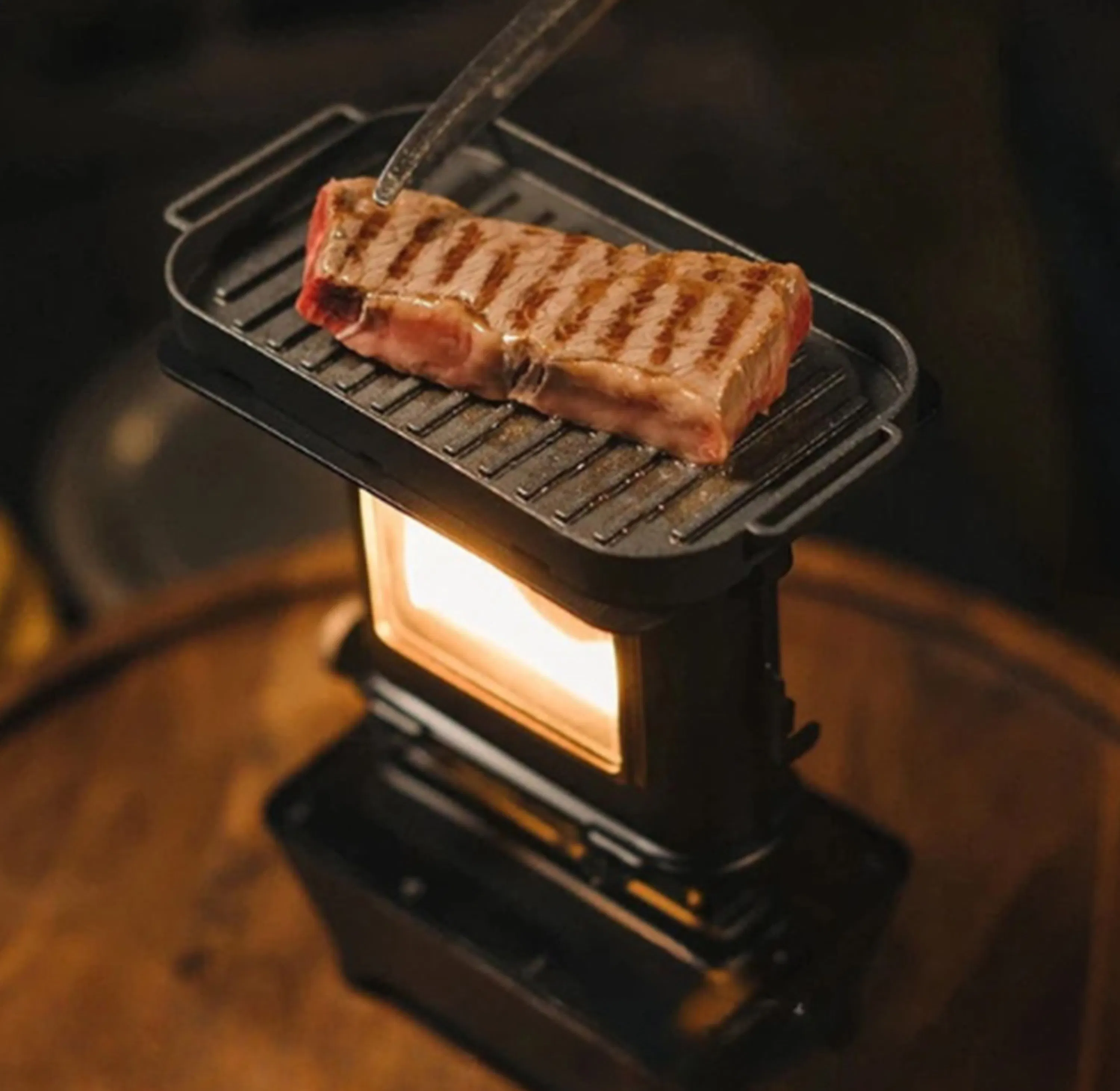 「暖をとる」だけでなく、「使える炎」として活躍します。小さな炎ながらも確かな熱量を持ち、上部プレートではお湯を沸かしたり、簡単な調理をすることも可能。その実用性は、ただ眺めて癒されるだけの焚き火とは一線を画します。