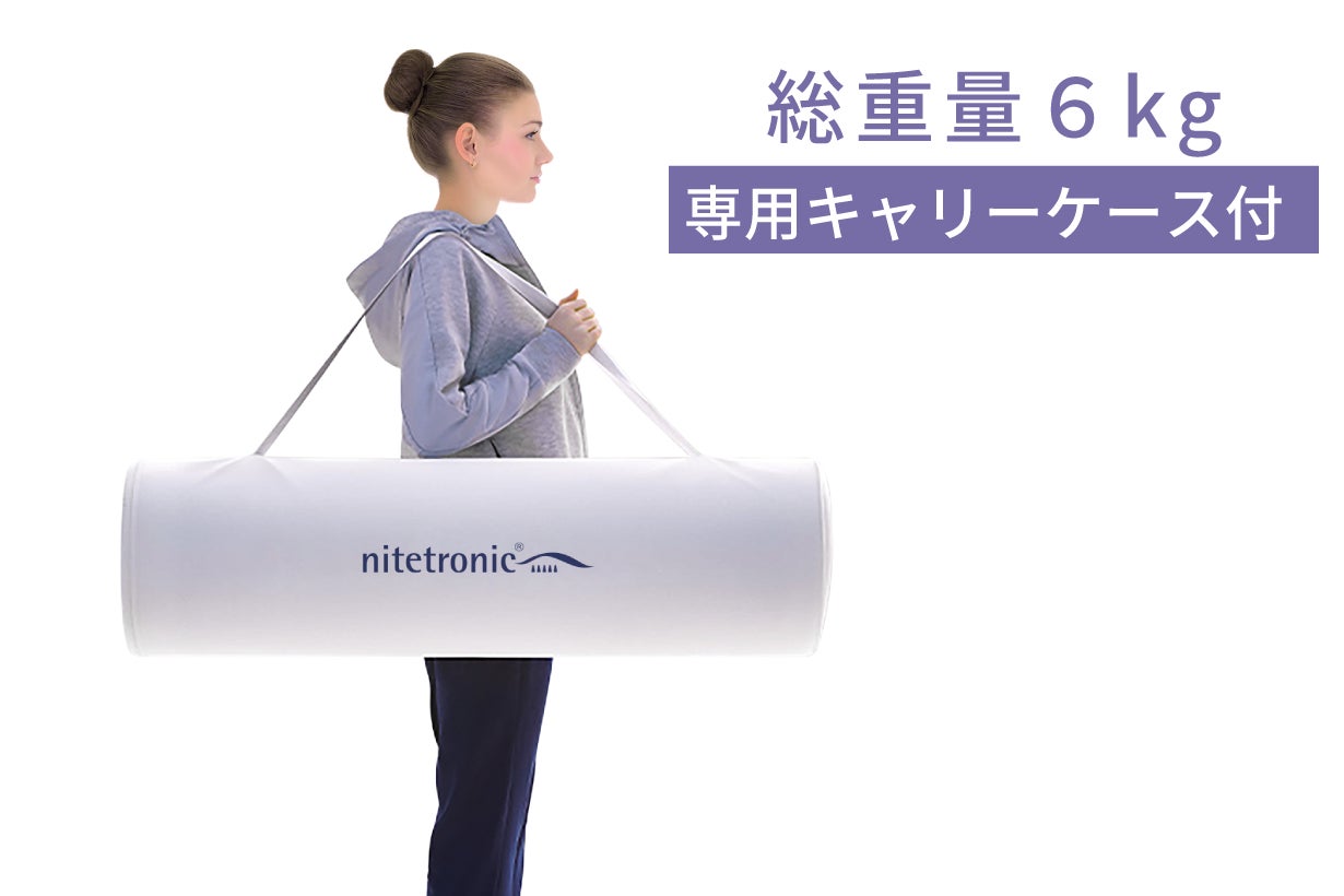 また一般的なエアバッグを使ったストレッチマットや、厚みのある低反発マットレスと違い、CosyPURを使ったNitetronic T3 Proはクルクルと丸めて畳め、専用のキャリーバッグに収納可能。重量も6kgと軽量で、女性でも楽々持ち歩けます。