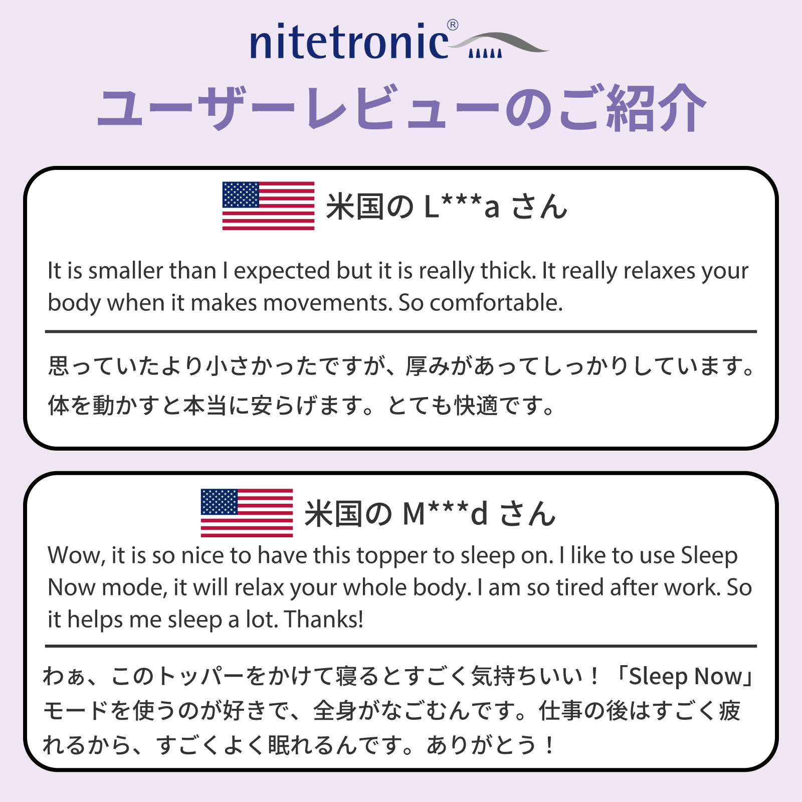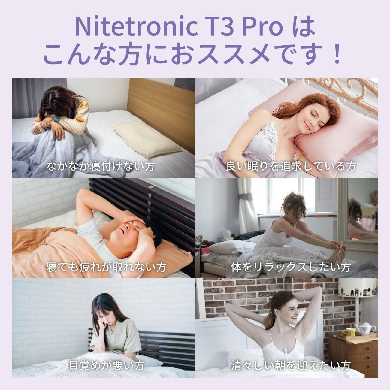 Nitetronicの使命は「睡眠の質を向上させること」です。Nitetronic では睡眠を科学し、スマートテクノロジーを駆使した製品で様々な睡眠の問題を解決し、健康的で安眠を妨げない環境を作りに尽力しています。そして睡眠ヘルスケア市場におけるグローバルプレーヤー、そして世界で最も影響力のある睡眠のブランドのリーダーになることを目標にしています。