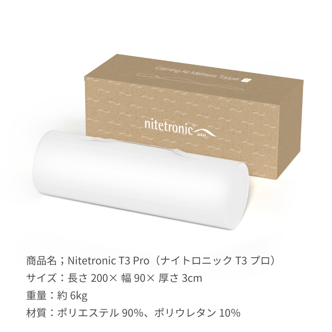 ※Nitetronic T3 Proのサイズは90×200cmです。小さめのシングルベッドでは縦方向ではみ出る場合があります。ご容赦ください。