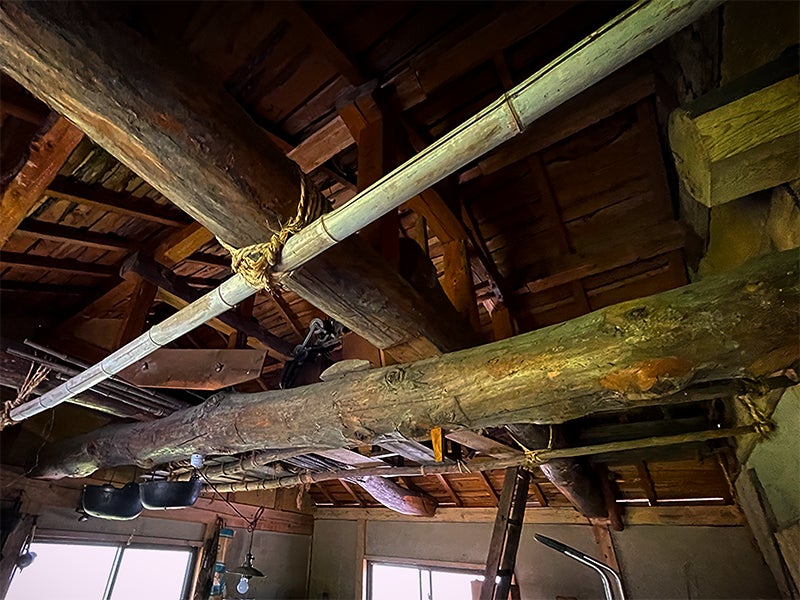 外観は堂々としていて、内部は、この地域ならではの雪に耐えるしっかりとした造りだ。なかでも、二階の農作業部屋――蚕部屋――は特別だった。低い天井を支える丸太の梁が幾重にも渡り、陰影の濃い木肌には、長い年月を生きてきた家の記憶が刻まれていた。