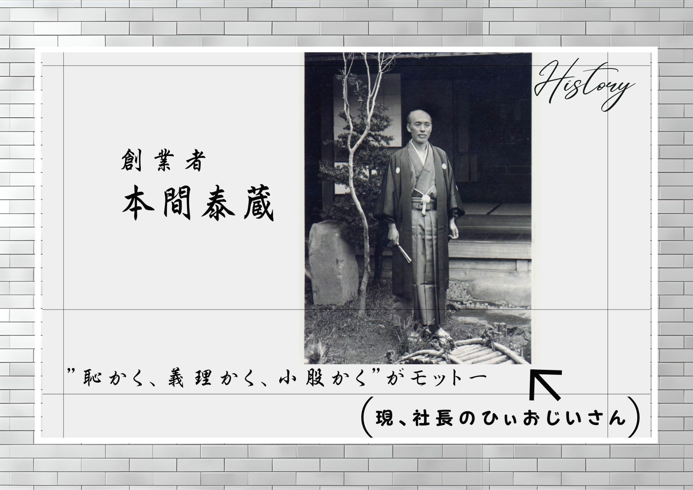創業者・本間泰蔵は、常に革新を続けた人物でした。薪から石炭への転換、増毛初の電灯設置提案など、時代の先端をゆく経営を行っていました。