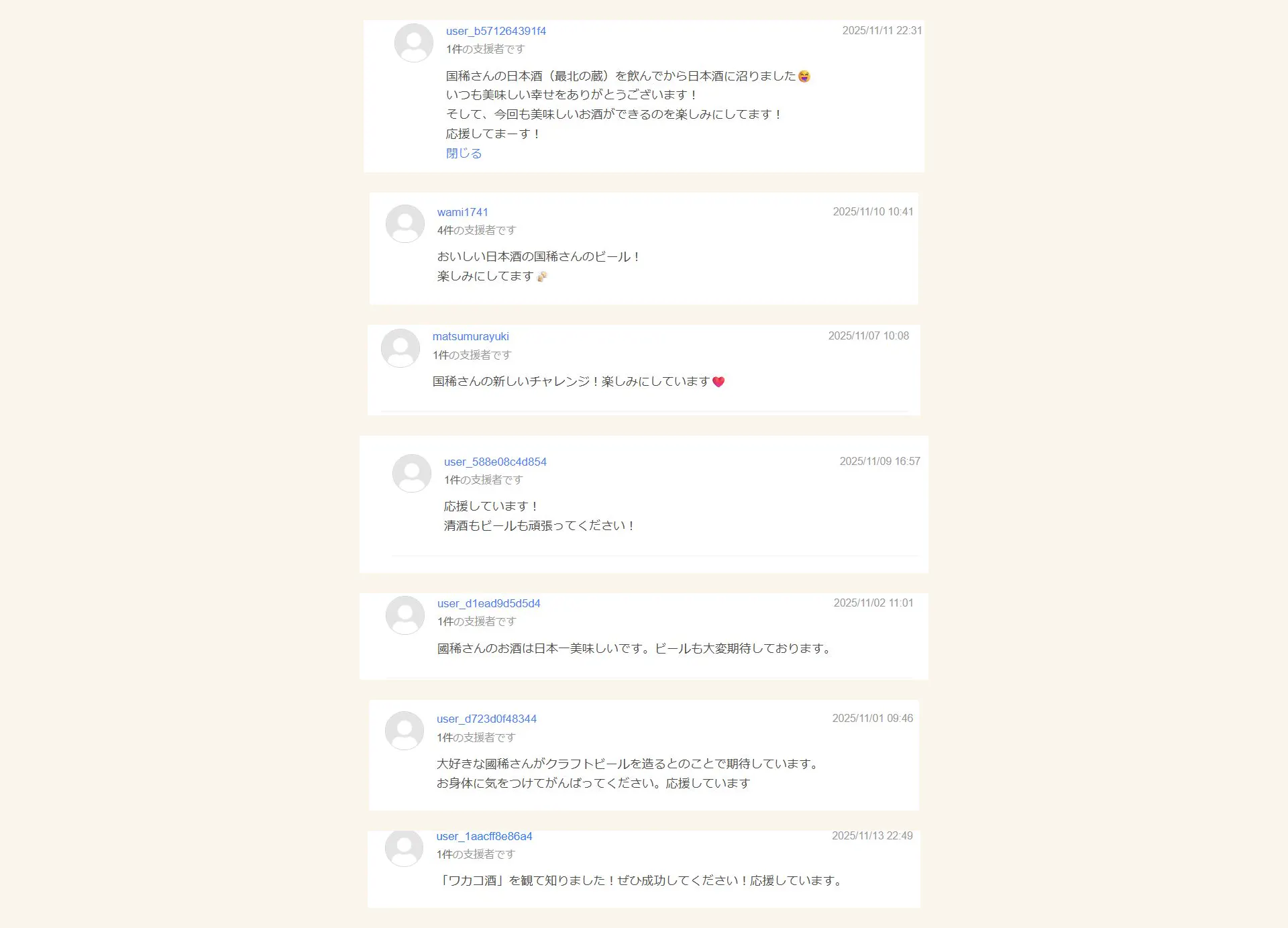 この度は、国稀酒造「千石蔵 CRAFT BEER PROJECT」にご支援を賜り、心より感謝申し上げます。皆様のおかげで大台の100万円を突破いたしました。