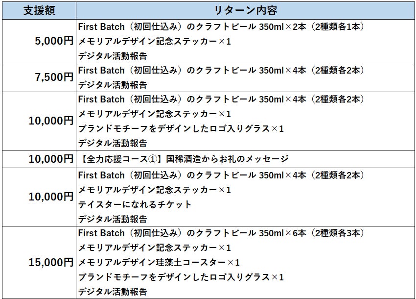 一部プランのリターン商品には、当醸造所のFirst Batch(初回仕込み)製品を同梱します。複数レシピ(2種予定)の各First Batch製品・クラウドファンディング限定ラベルをお楽しみください。