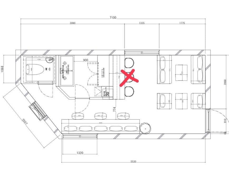 また、6坪と狭い店舗ですので椅子下収納や