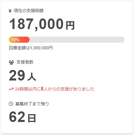 2026年2月27日AM5:51現在、プロジェクト達成率は18%です。
