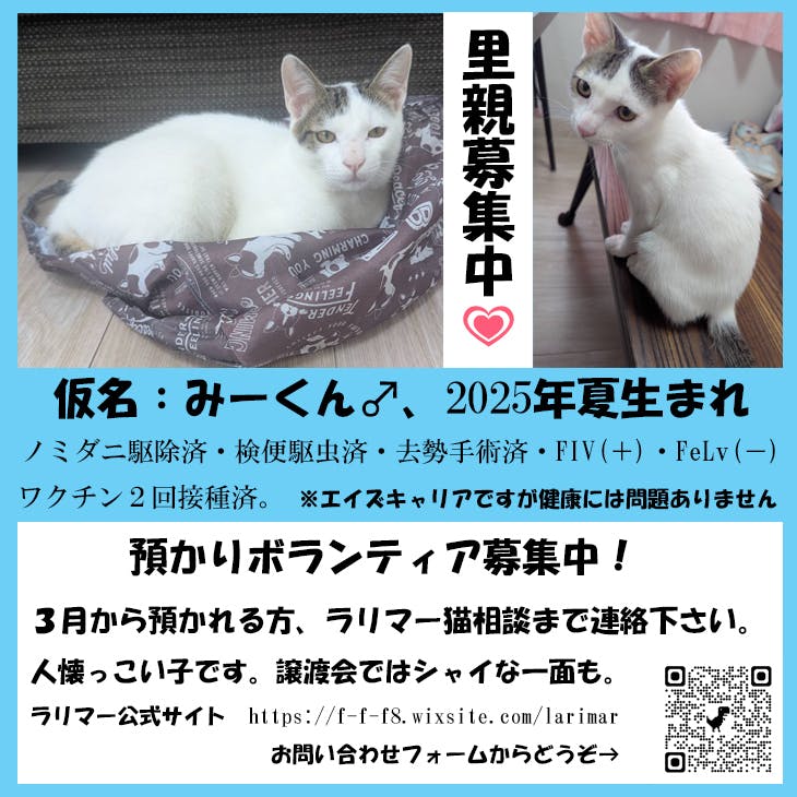もしもラリマーブログなどで気になる猫がいましたら、お気軽にお問い合わせ下さいませ。