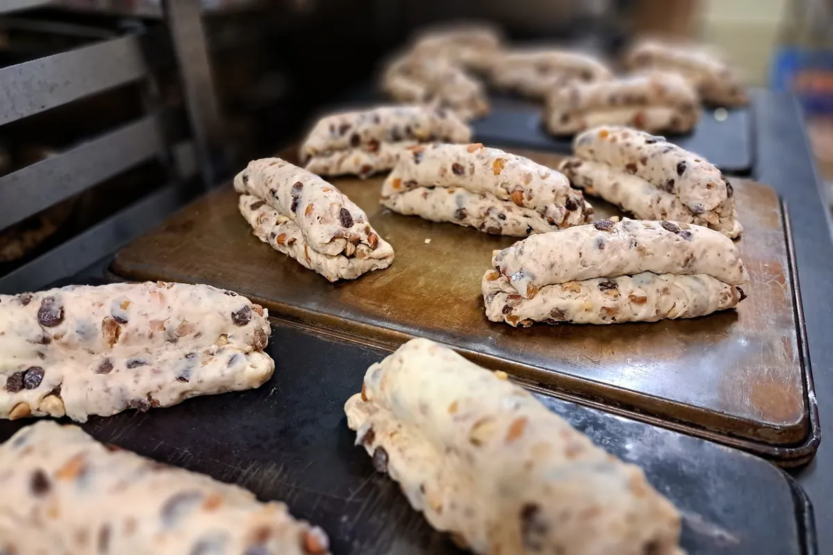 そこからは、ドライフルーツの漬け込み方、ナッツの火入れ、生地作り、バターの扱い方、発酵や焼き方まで、あらゆる工程を少しずつ改良しました。そして2001年、クレッセントをオープンしたときには、ほぼ今の形に近いシュトレンが焼けるようになったのです。その後も2017年まで、少しずつ味や工程をビルドアップし続け、皆さんに喜ばれるシュトレンへと育ててきました。