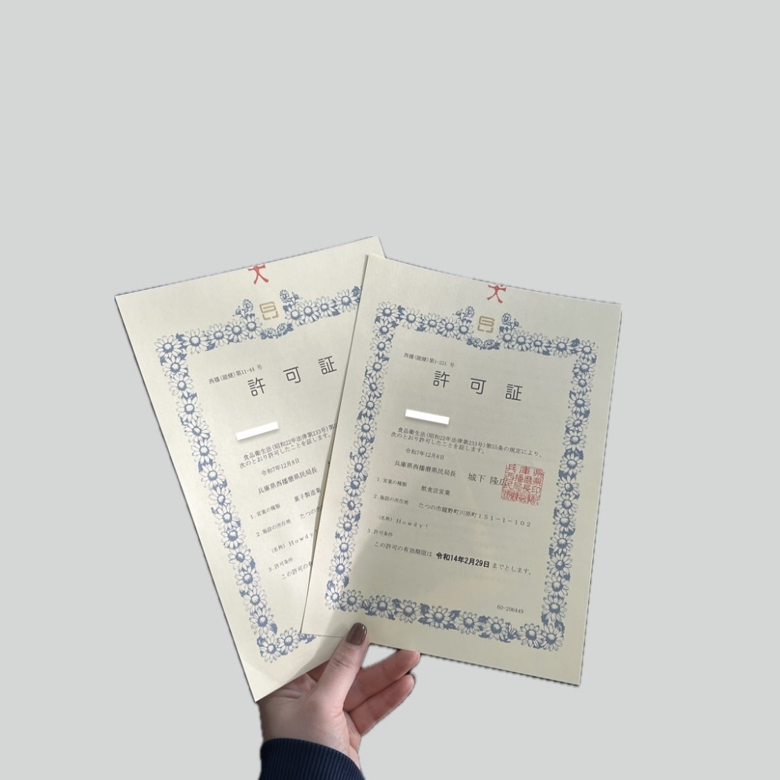 無事保健所の申請が通り、【飲食店営業許可】と【菓子製造許可】を取得できました!!