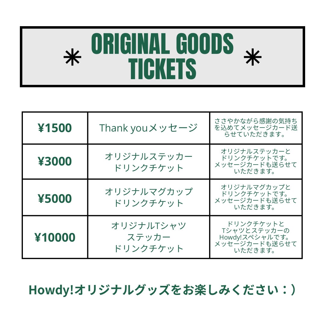 店舗でご利用いただけるドリンクチケット、焼き菓子・ケーキチケット、オリジナルグッズなど、私たちの想いをたくさん込めて精一杯お返しさせていただきます‼