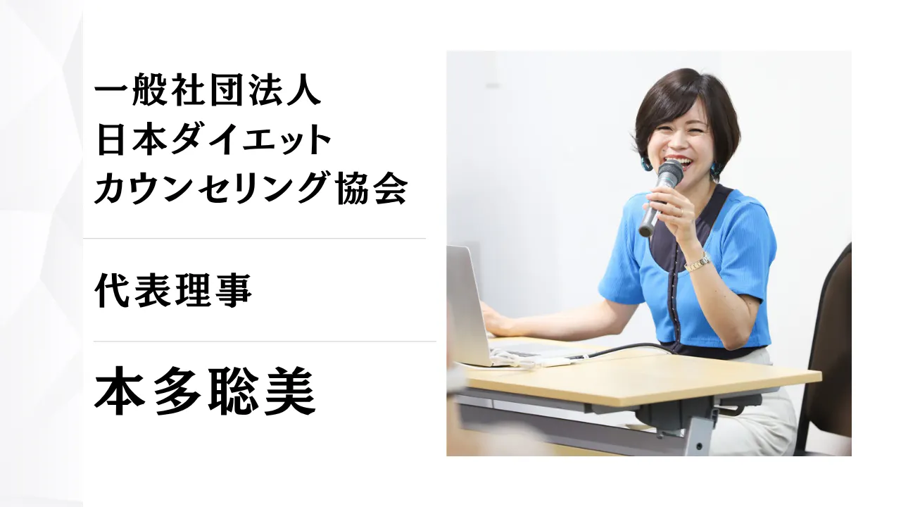 はじめまして。一般社団法人日本ダイエットカウンセリング協会 代表理事、そして合同会社フィデイン 代表の本多聡美と申します。