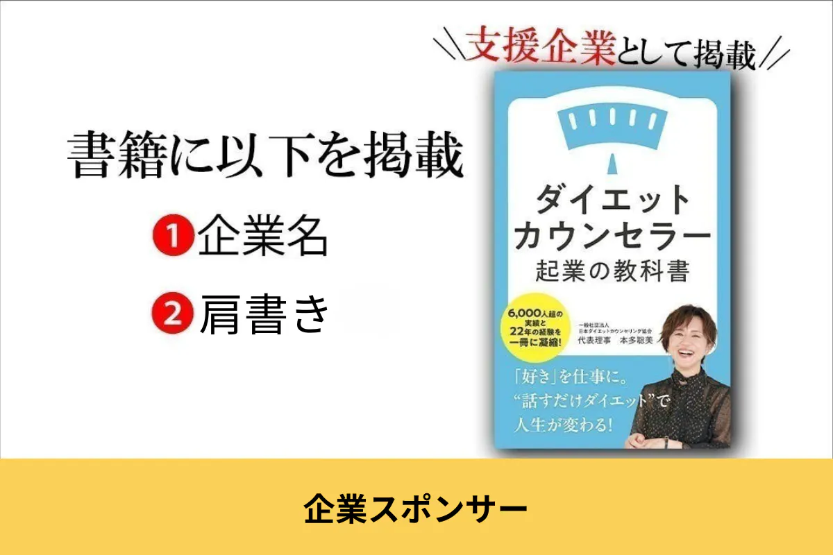 書籍『ダイエットカウンセラー起業の教科書』の企業スポンサーになれる権利です。