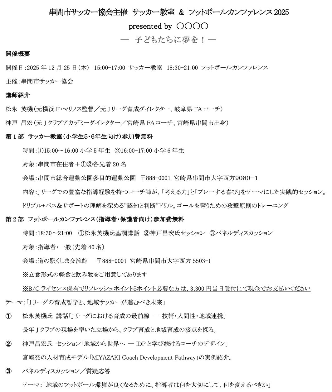 この達成を受け、2026年も「完全無料のサッカー教室&フォットボールカンファレンス」を追加開催することが決定しました。