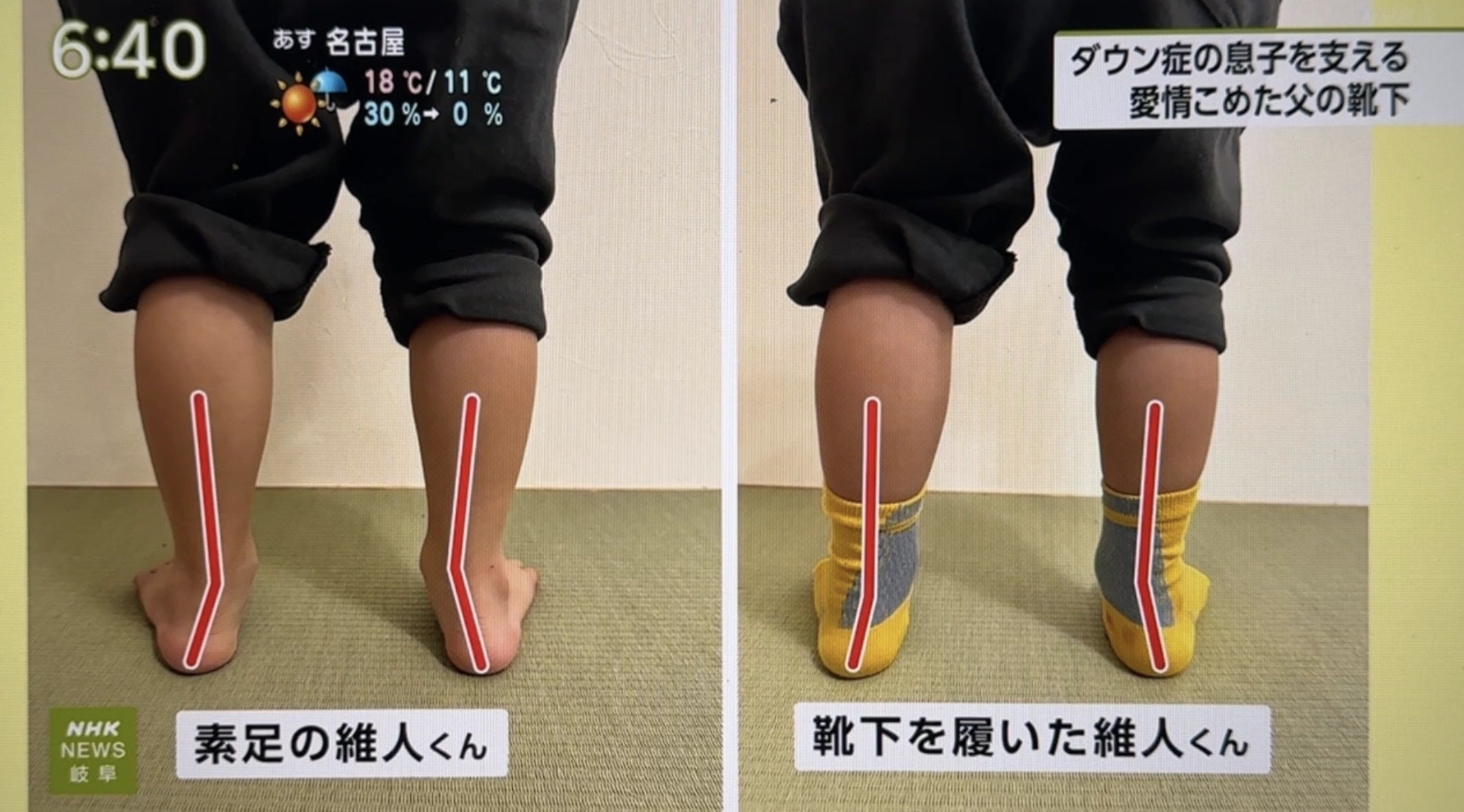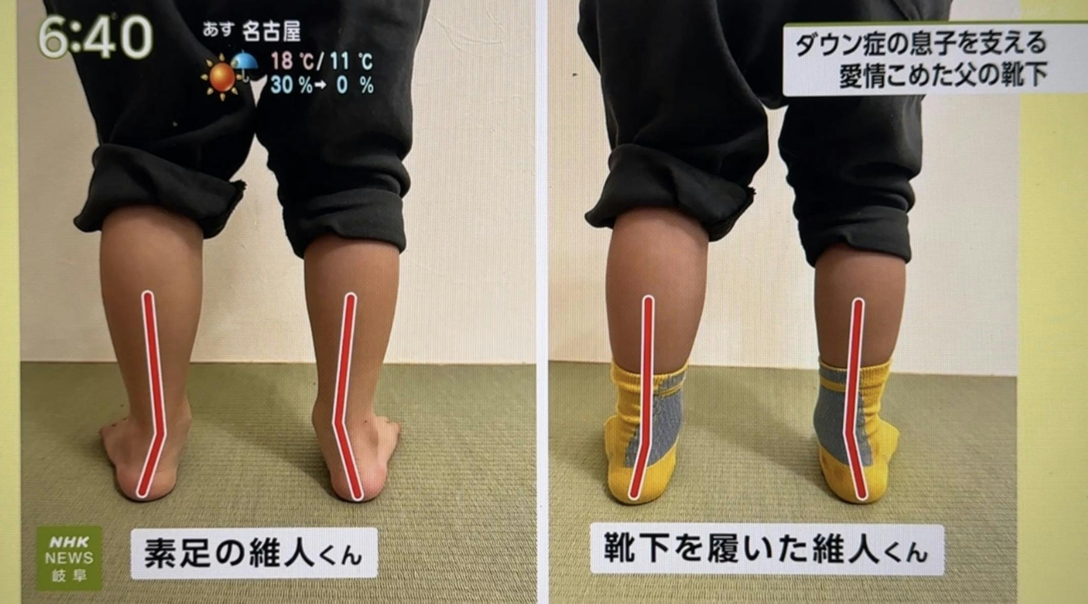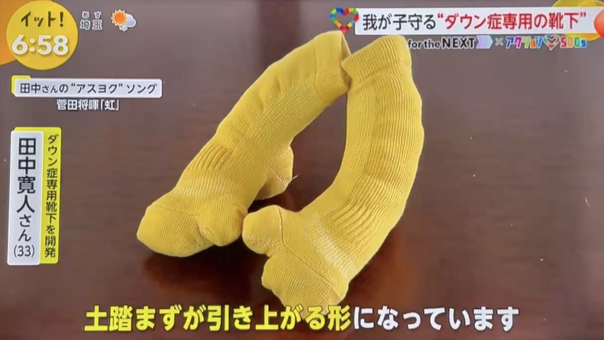 ダウン症専用靴下の取り組みは、新聞掲載だけでなく、テレビでも取り上げていただく機会がありました。