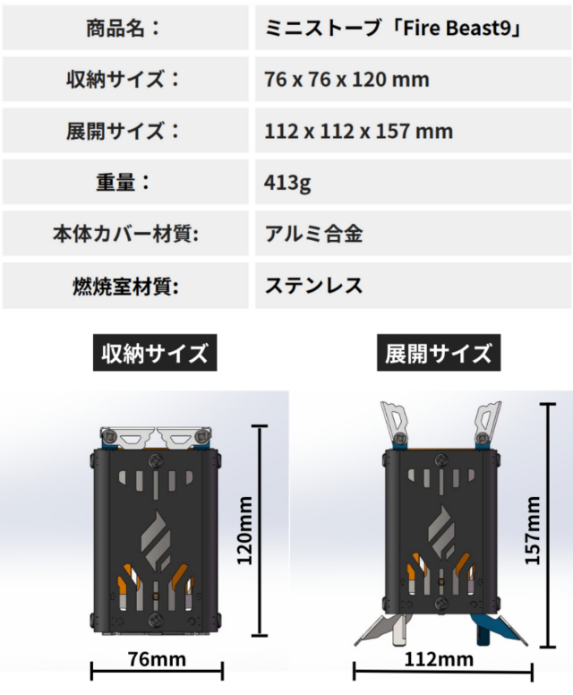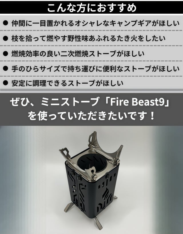 ミニストーブ「Fire Beast9」は、コンパクトな手のひらサイズのストーブです。