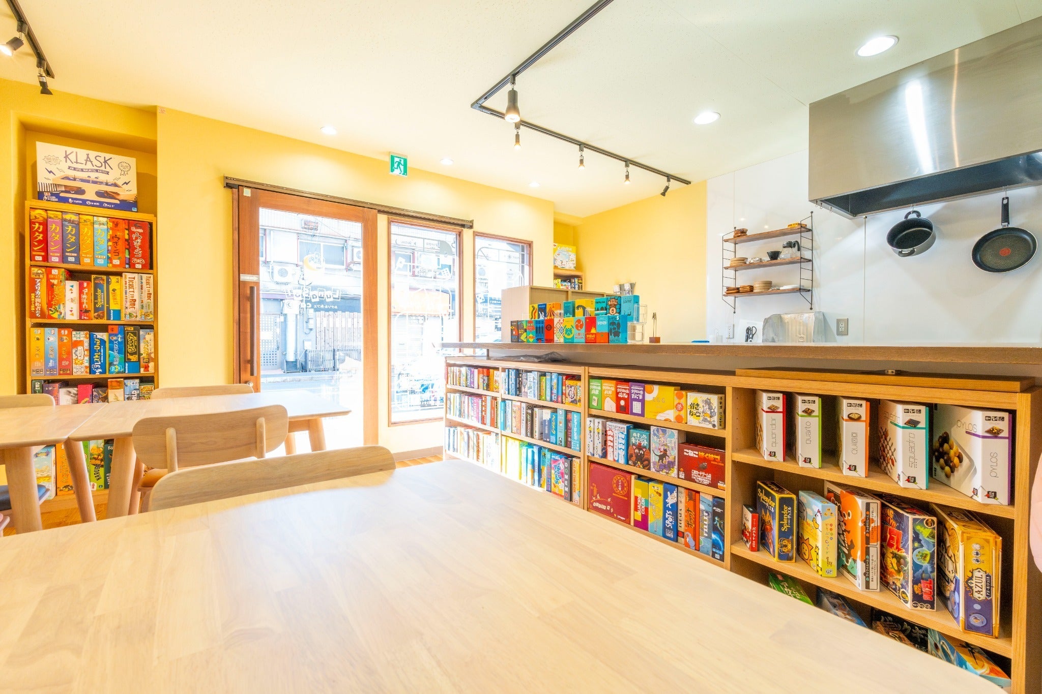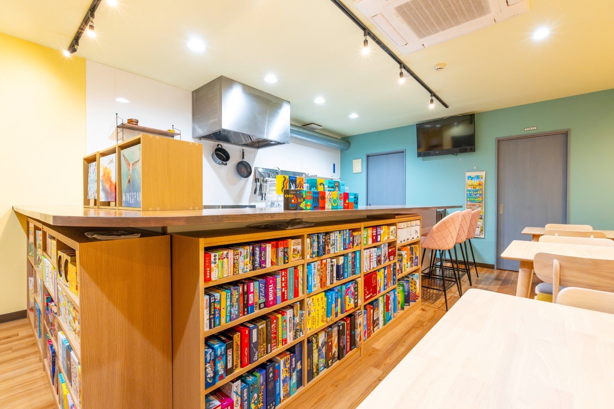 今回は、お店の外観・看板・店内の様子・ボードゲームが並ぶ棚