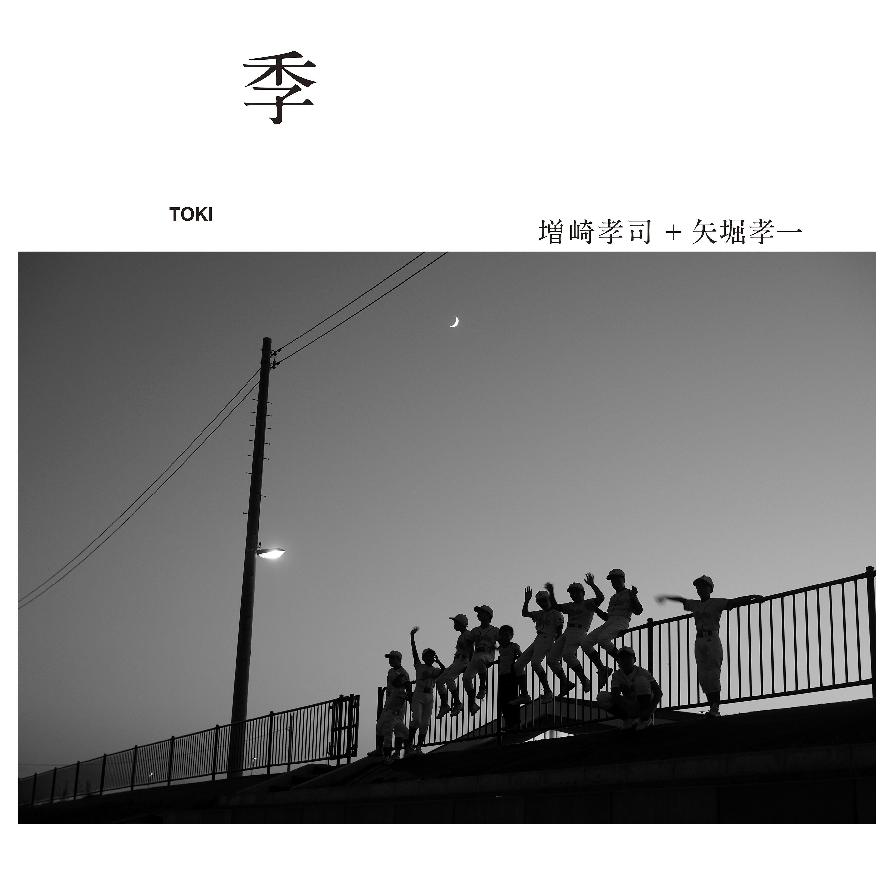 夕暮れから夜へと移ろう時間。空に浮かぶ月と、土手の柵に無邪気に跳ねる少年たち。過去と未来、静けさと躍動が一枚の写真の中で、自然に溶け合っています。「季(とき)」が描く“時間の流れ”や“成長の気配”を象徴するような一枚です。