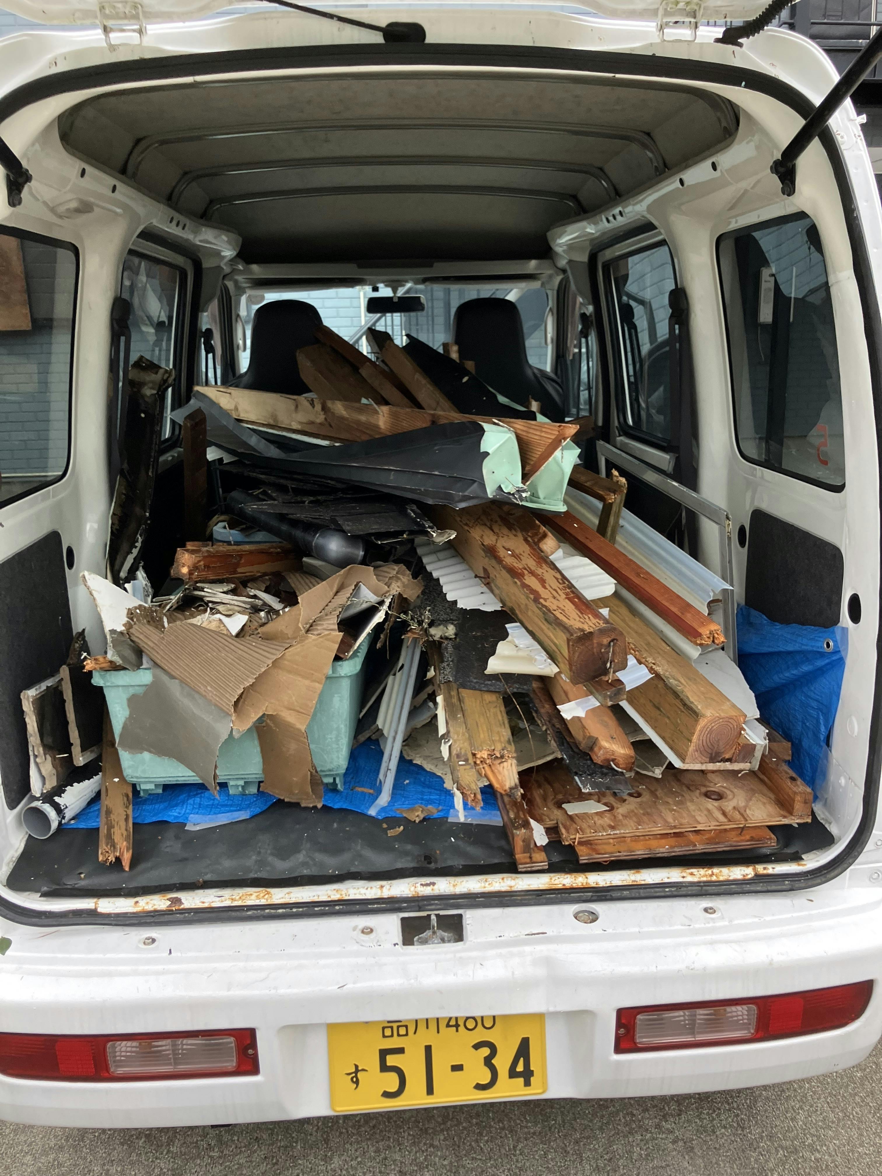 レピュートの外に置いていたものも、すべて撤去したはずなのに、屋根材やがれきが再び散乱していて、運ぼうとしても男3人でびくともせず、被害の大きさを痛感しました。