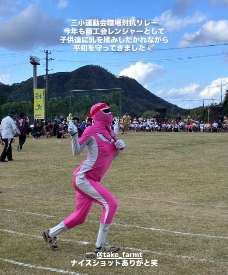 運動会では仮装して、商工会レンジャーとして走ったりもしました。