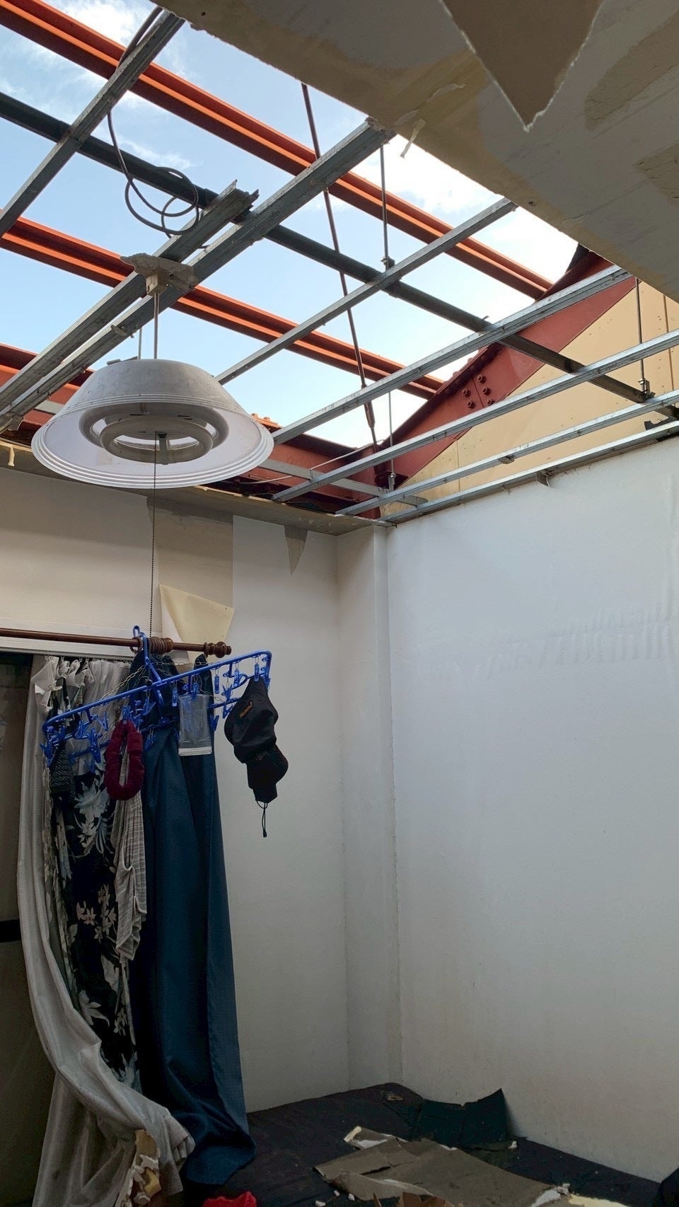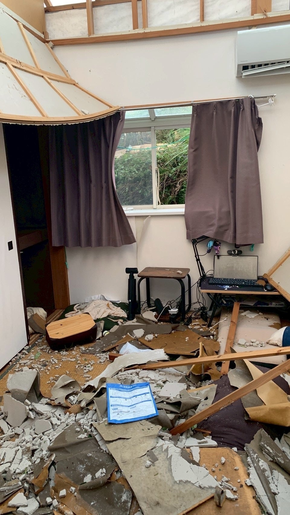 屋根が吹き飛び、雨が降り注ぎ、天井が崩れ落ちる。