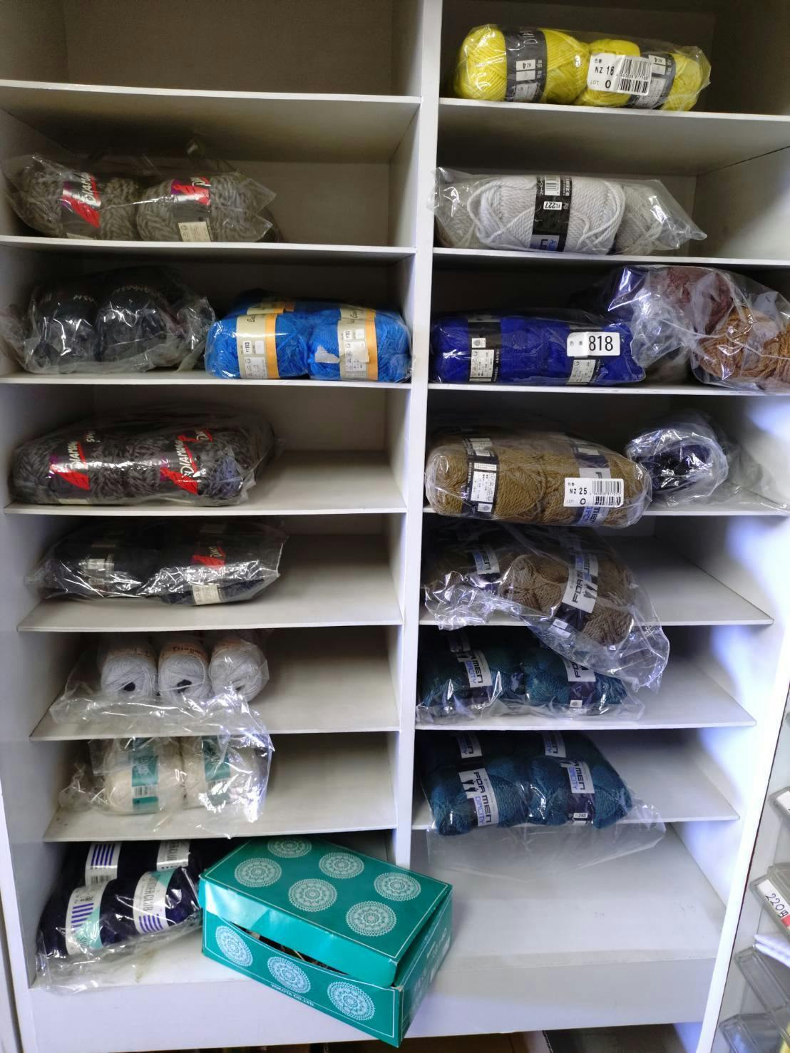 毛糸・糸・刺繡糸・籐細工・ボタン・針・リボン・そのほかたくさんの品物がありました。