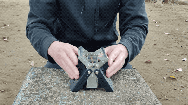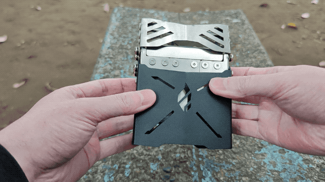 A:一体型で組み立てが不要な構造になっております。さらに、展開式の脚と五徳を本体に収納可能な薄型構造で、持ち運びもスムーズ。キャンプギアの荷物をできるだけ減らしたい方に最適です。