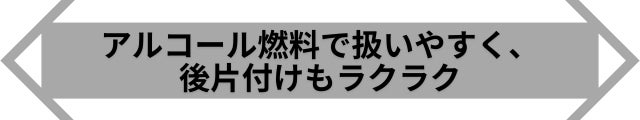 おすすめの燃料はエタノールまたはメタノールのいずれかで、濃度が88%以上のものをお使いください。