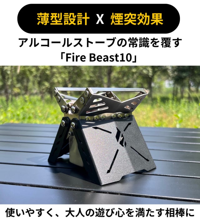 コンパクトに収納でき、追加パーツ不要ですぐ使える、しかも高火力、そんな新感覚アルコールストーブ「Fire Beast10」が誕生しました。