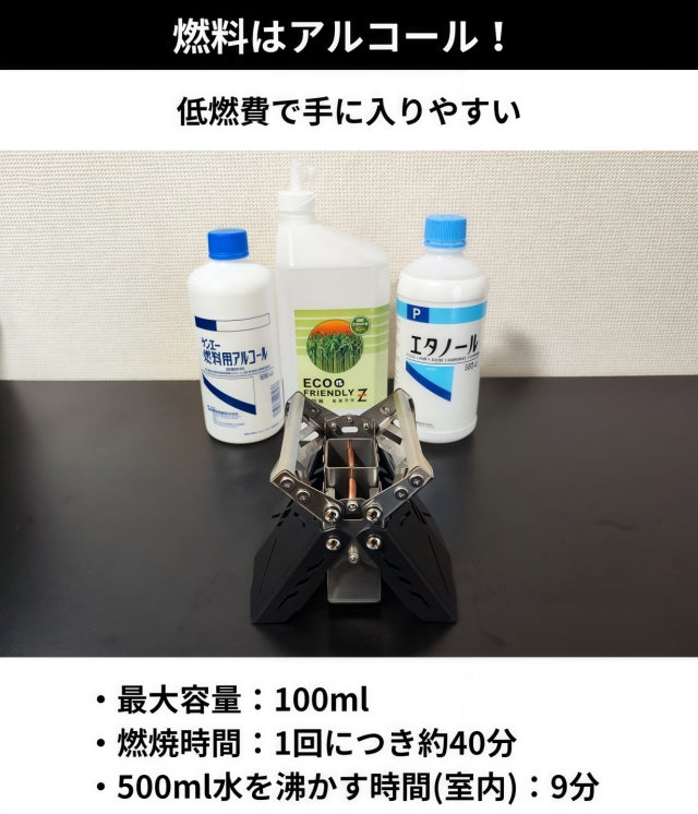 アルコールは比較的手頃な価格の燃料で、経済的かつ利便性に優れています。