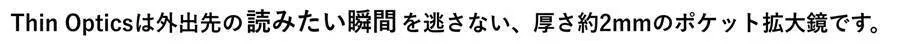 外出先で大げさなルーペをガサゴソ探す時代はもう終わり!Thin Opticsなら、財布にもスマホにもスッと収まる薄さと軽さで、いつでも手元に置ける常備性を実現。
