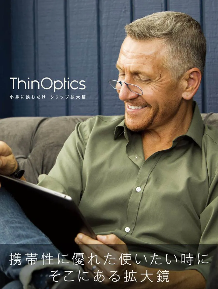 Thin Optics は、いつでも・どこでも・サッとかけられる”を叶えた次世代の携帯型リーディンググラスです。